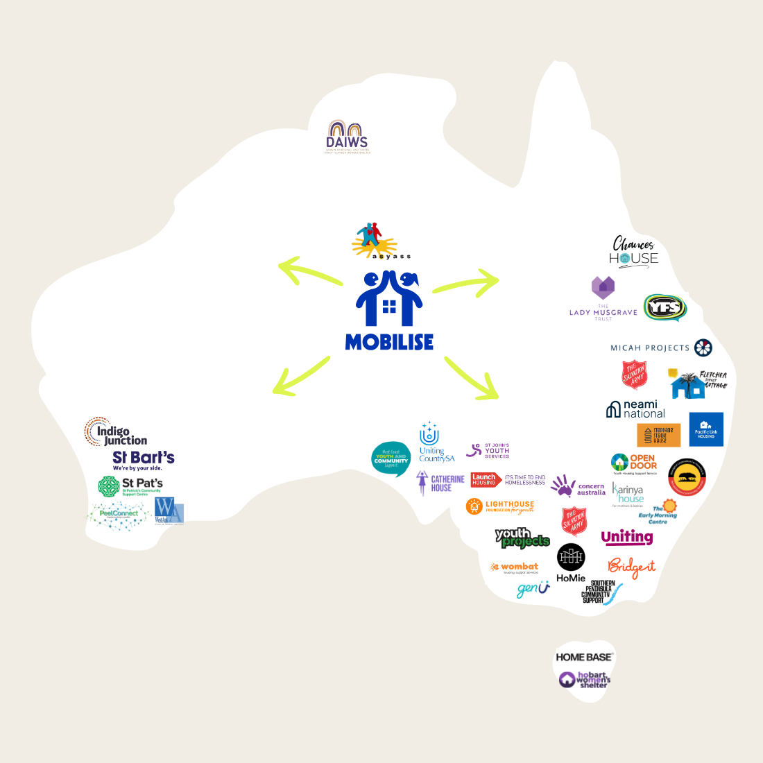 Mobilise works alongside a network of charity partners around Australia who refer clients to us and deliver wraparound support.